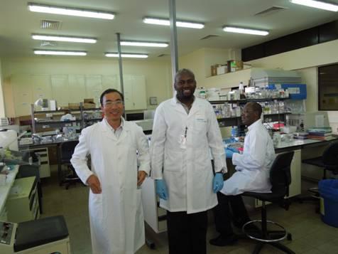 我所刘永生研究员和刘志杰副研究员是受ILRI生物技术部的Vish Nene和 Phil Toye教授邀请前往ILRI参加科研交流与合作工作。这两位教授是家畜疫苗项目的首席科学家,他们的近期主要任务是研制东海岸热的新型疫苗。最近Phil Toye 领导研制的东海岸热新型疫苗――ITM疫苗在肯尼亚获得批准使用。经项目主要负责人研究决定,刘永生研究员和刘志杰副研究员主要协助Roger Pelle博士(项目执行人)进行一些技术难点的攻关研究。为此,刘永生主要从事了小泰勒虫(东海岸热病原)Tp1抗原的重组表达优化和制备大量高纯度重组蛋白的工作;Tp1是已知的小泰勒虫抗原,它可以引起机体T细胞免疫,是研制小泰勒虫新型疫苗的主要候选抗原之一,然而该重组蛋白的表达量低,可溶性成分少,成为了进一步实验的瓶颈。刘永生研究员经过改变诱导表达条件,更换宿主细胞等方案对表达进行了优化,表达水平得到了一定的提高。经过对重组表达质粒分析发现,该质粒需要进行密码子优化,以便适应原核表达系统,这项工作正在开展之中。刘志杰副研究员主要参与了小泰勒虫Tp9基因多态性分析的研究。已有的研究表明,小泰勒虫存在较多的基因型,而且不同基因型在小泰勒虫流行区的分布不同,基因分型的研究将为有针对性的应用活疫苗免疫提供重要资料,提高疫苗免疫效果,减少由活疫苗引起的小泰勒虫不同基因型的扩散。然而,Tp9基因的片段较长,变异较大。从野外样品中高效扩增Tp9基因成为了研究的主要困难之一。刘志杰副研究员通过对多对Tp9引物进行配对实验,优化反应条件,筛选出了一对高敏感性的引物,该引物能够从0.1ng的DNA样品中扩增到靶基因,满足了进一步开展野外样品的调查的需要,目前,检测野外样品的工作正在进行之中。另外,在ILRI每周一次的新人推介聚会上向大家简短介绍了我所的情况;通过与实验室科研人员的交流,了解了国际家畜研究所的运行机制、研究所的管理方式及学习了对方的实验室交流制度、结交了相关的同行科学家。通过三个月时间的学习,开阔了视野,为促进我所与国际相关研究所的交流拓展了渠道。