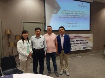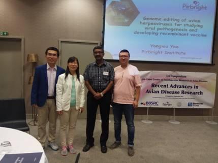 应英国Pirbright研究所Venugopal Nair 教授、Yongxiu Yao博士和山东省滨州畜牧兽医研究院院长沈志强研究员的邀请,我所郑福英副研究员、陈启伟助理研究员及魏衍全助理研究员于2017年8月30日至9月3日赴英国吉尔福德参加了第3届中英禽病研讨会。来自英国、中国、泰国、巴基斯坦、印度等国的70多名禽病学者参加了会议,20多名学者做了禽流感病毒、马立克氏病毒、禽白血病病毒、新城疫病毒、禽疱疹病毒、传染性支气管炎病毒、传染性法氏囊炎病毒、传染性喉气管炎病毒等禽病的流行病学与检测、新型疫苗研发、分子致病机理、转录组学、miRNA、基因编辑以及禽的免疫系统等方向的报告;20多名学者以海报形式展示了各自研究领域的最新进展。魏衍全助理研究员就重组传染性支气管炎病毒的疫苗研发以海报的形式进行了展示,并与英方同一研究领域的学者Dr. Erica Bickerton等人进行了交流,郑福英副研究员和陈启伟助理研究员也与大会代表就各自研究方向的进展进行了深入交流,并对联合开展研究、人员互访、资源共享、申请合作项目等方面提出邀约。会议中期,中国驻英国大使馆科技秘书就中英国际合作的渠道及经费支持进行了详细讲解。最后,在Venugopal Nair教授的带领下,与会代表参观了Pirbright研究所的实验室,实地了解了Pirbright研究所的实验室运作模式。
