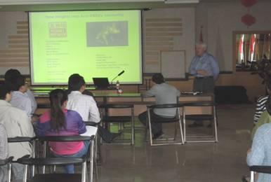 5月20日,Murtaugh 教授在五楼学术厅做了题为“New insights into anti-PRRS immunity”的学术报告。报告内容涉及了猪蓝耳病基因组研究的方法,快速诊断与分型,流行病学以及PRRSV的免疫学问题。通过PRRSV不同病毒株的免疫学试验以及基因组测序分析,他认为宿主对入侵的PRRSV的作用促进了PRRSV的变异,但宿主产生抗体对病毒清除的机制仍然需要进一步的研究。会后,Murtaugh 教授与刘永生研究员和张杰研究员一同去北京参加北京举行的国际蓝耳病大会。