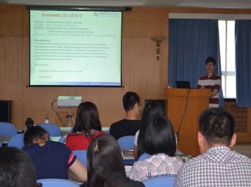 我所多位科研人员及研究生参加了报告会,报告会由郑海学研究员主持。在报告中,匡博士对蛋白质芯片的概念及其原理进行了详细的介绍,对当前三种不同的蛋白组学研究方法进行了比较。同时,结合了几个科研实例对蛋白芯片在具体生物学实验中的应用进行了阐述。最后,匡博士对蛋白质抗体芯片在动物疾病及药理方面的应用提出了一些建议,希望蛋白质抗体芯片能够在动物疾病中得以广泛应用。报告结束后,我所研究人员与匡博士就一些感兴趣的问题进行了探讨,匡博士均予以认真细致地解答,并提供了一定的指导意见。