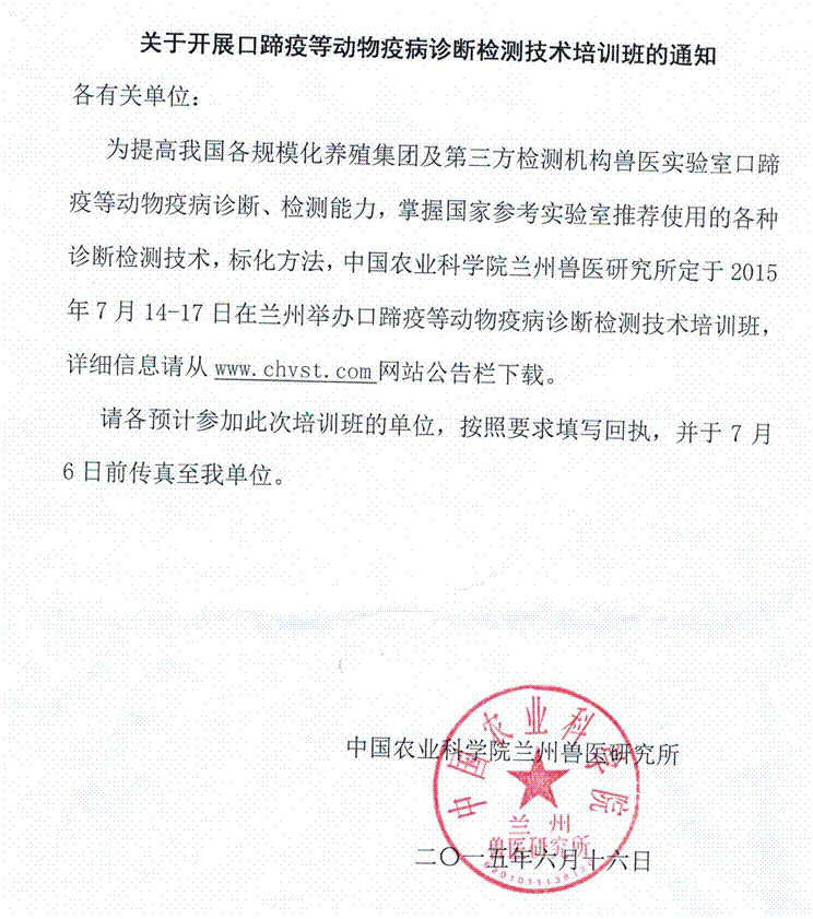关于开展口蹄疫等动物疫病诊断检测技术培训