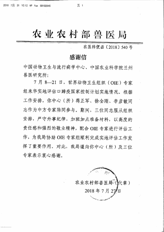 农业农村部动物生物安全风险预警及防控重点实验室(北方)(试运行)