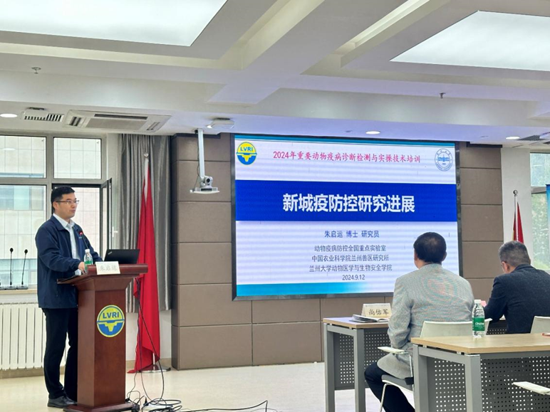 朱启运副所长向学员作了“新城疫防控技术进展”的报告。纪委书记申拥军出席了开班仪式,并向参会学员和授课老师作了题为“贯彻二十届三中全会精神,进一步深化党纪学习教育”的思政学习培训。兽医临床服务中心主任何继军向学员们介绍了欧宝娱乐手机版下载及兽医临床服务中心概况,并作了“我国口蹄疫流行现状和综合防控技术”的报告。中心副主任尚佑军向学员们作了“牛羊重要传染病的流行现状及防控”的报告。临床中心其他老师参与了授课和实验室操作指导。本次培训还邀请了研究所动物病毒分子生态学创新团队、生物安全与平台管理处、兰州兽研生物科技有限公司和中农威特生物科技股份有限公司等专家老师进行了授课和讲解。