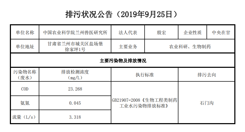 2019年9月25日污水排放监测数据公告