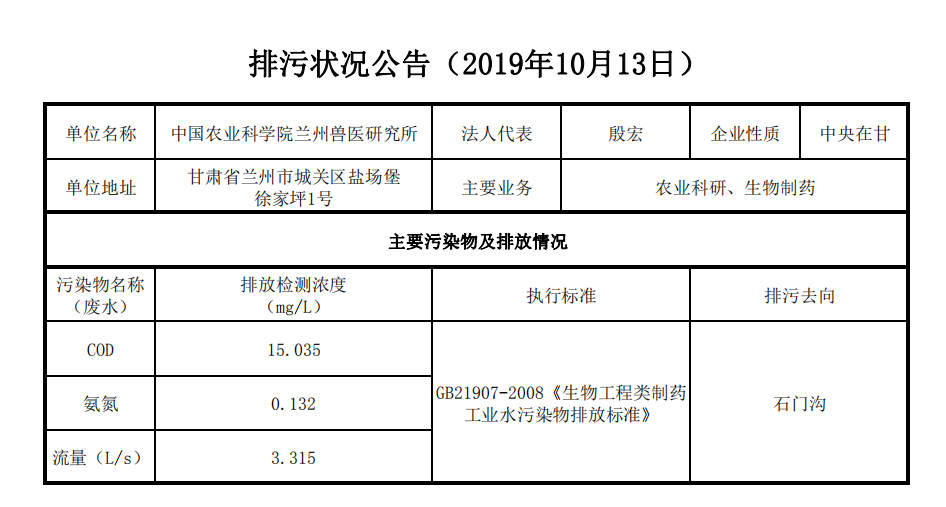 2019年10月13日污水排放监测数据公告