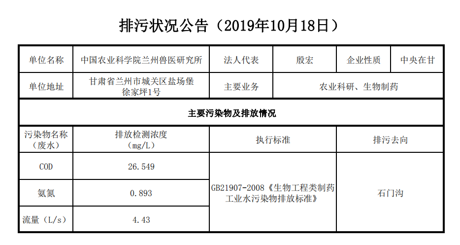 2019年10月21日污水排放监测数据公告