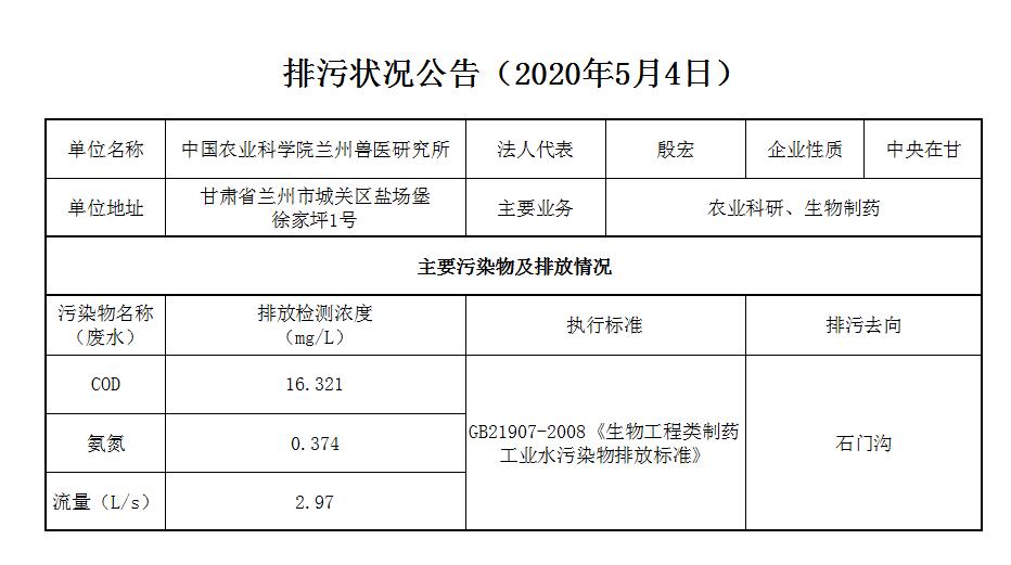 2020年5月4日污水排放监测数据公告