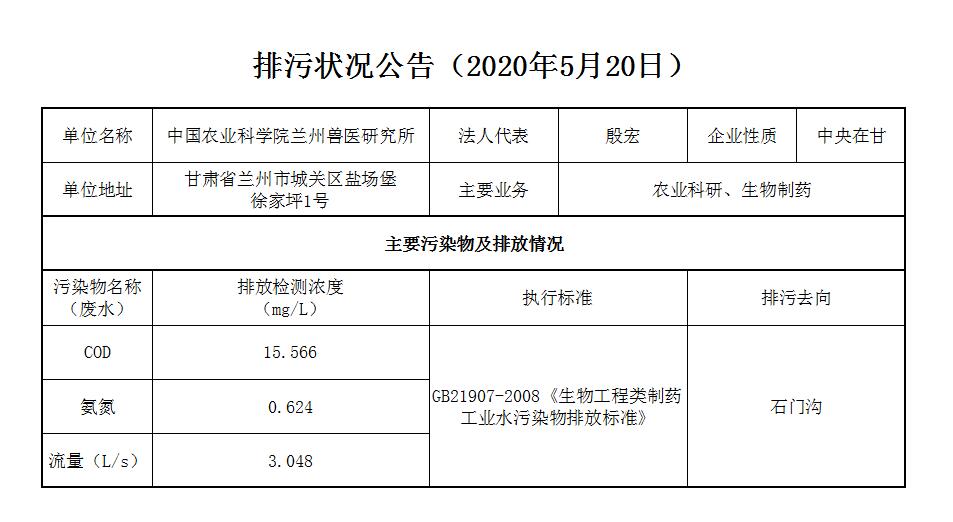 2020年5月20日污水排放监测数据公告