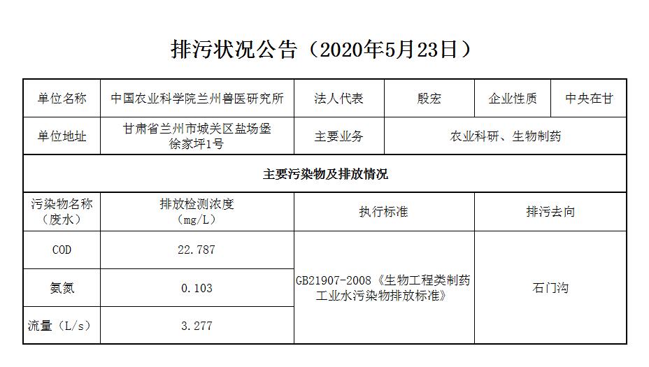 2020年5月23日污水排放监测数据公告