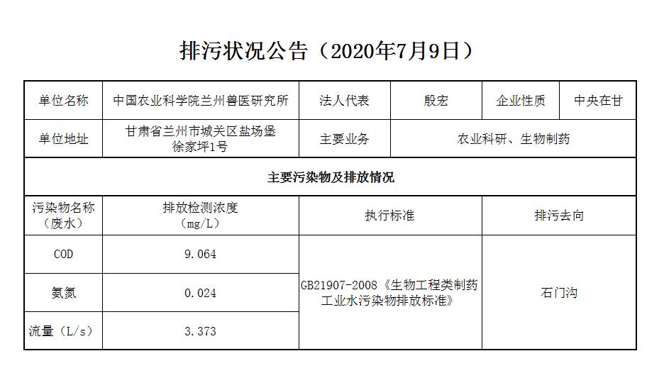 2020年7月9日污水排放监测数据公告