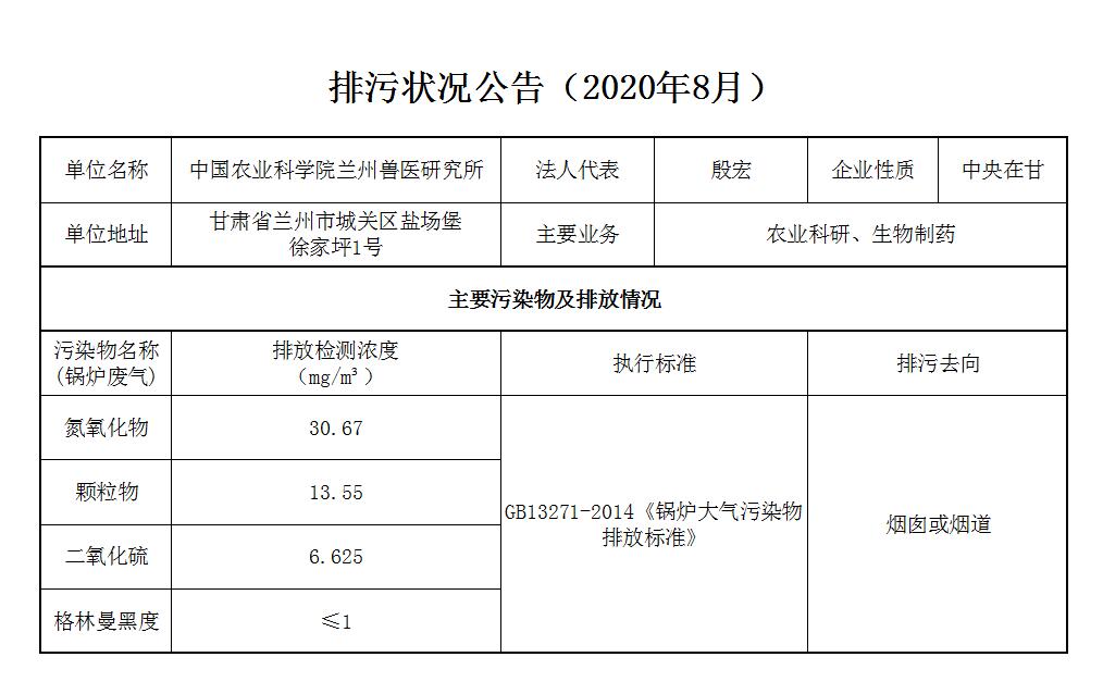 2020年8月锅炉废气排放监测数据公告