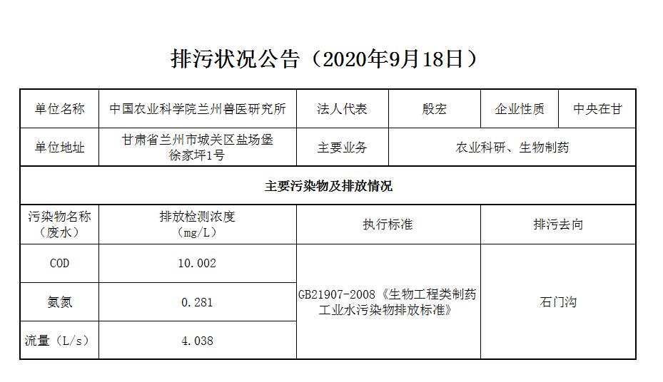2020年9月18日污水排放监测数据公告
