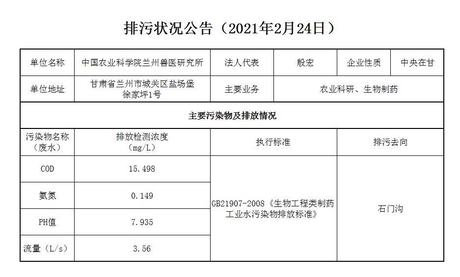 2021年2月24日污水排放监测数据公告